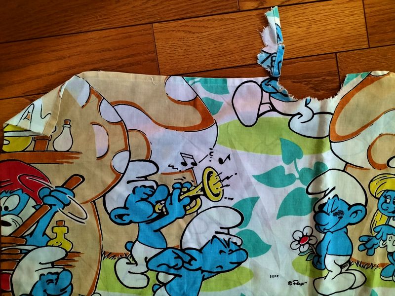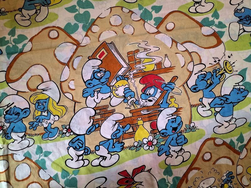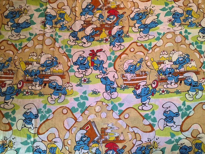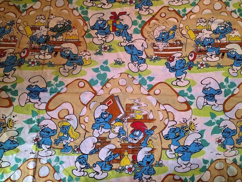 スマーフ、ケーキ作り柄、ビンテージフラットシーツ