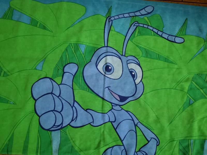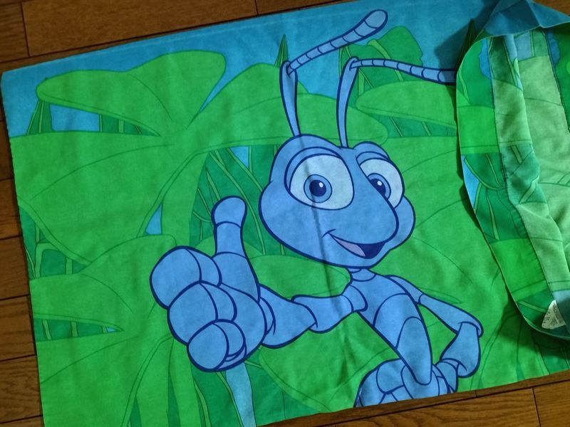 ディズニー、バグズライフ、ピロケース ディズニー、バグズライフ、ピロケース (pc0034) 袋状になった枕カバーで約50cmX74cmです。 50%コットン50%ポリエステル、アメリカ製。 全体に少し色あせ感があります。 目立つ傷や毛玉はありません。プリントきれいです。 生地もしっかりです。 保障なし発送200円。 在庫状態 : 在庫有り ¥400(税込) 数量